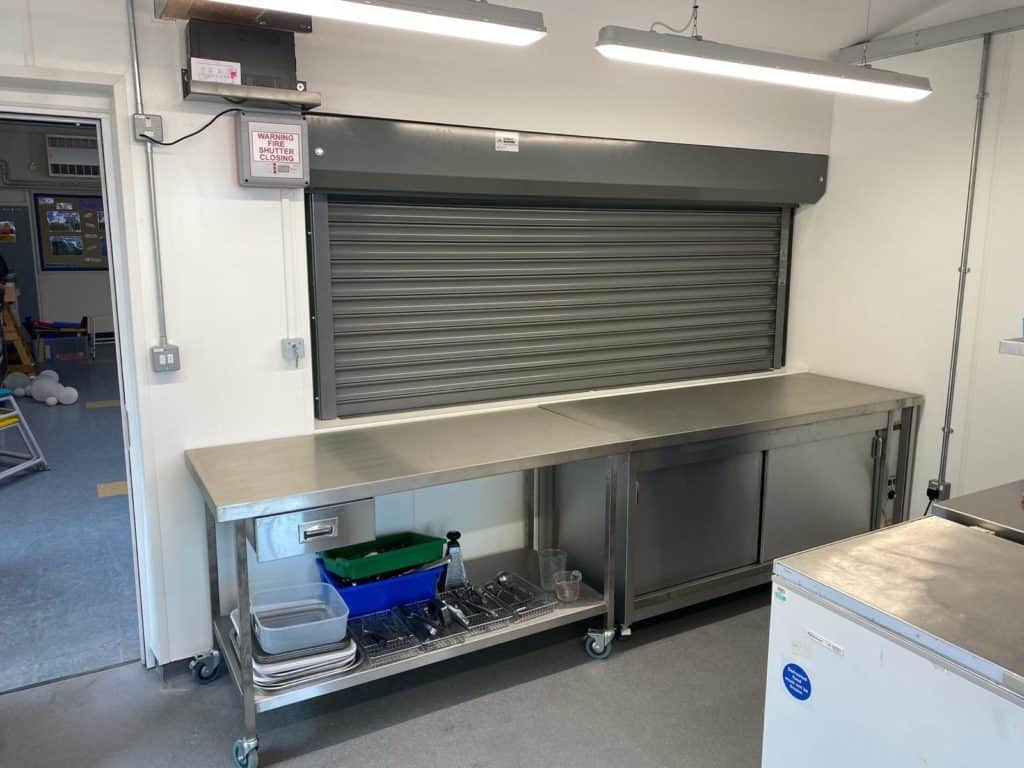 We also supplied and fitted new heating, ventilation, lighting, and power supplies, along with fire alarms and security systems. White cladding was installed in the kitchen, and suspended ceilings were added to the classroom.